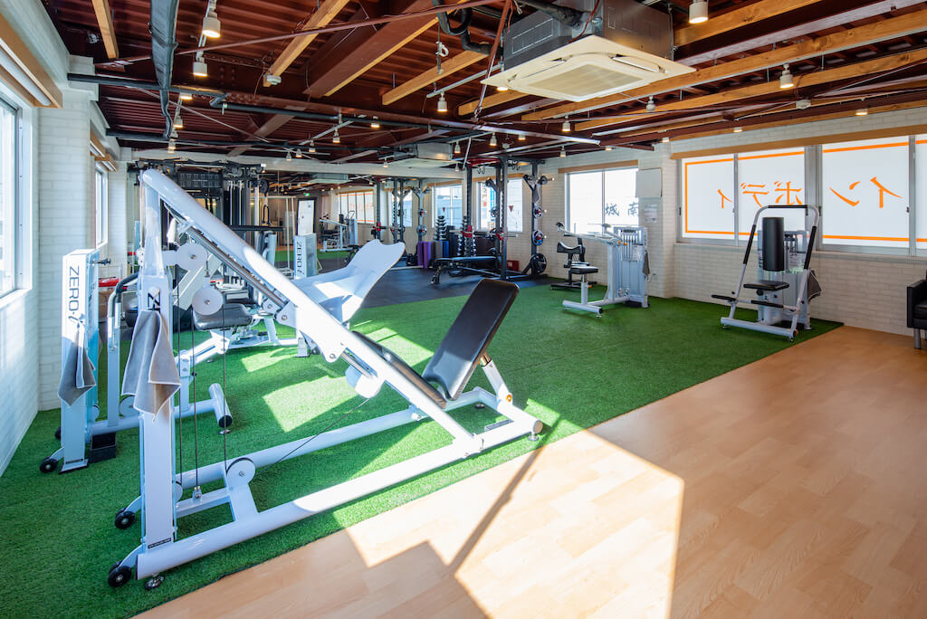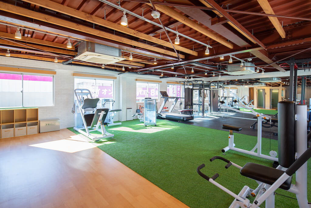 内装は、リラックスしてトレーニングに取り組んでいただけるような配色と空間構成を心がけ、特に女性専用のパウダールームはポイントカラーを配置することで気持ちが明るくなるようなデザインをしております。